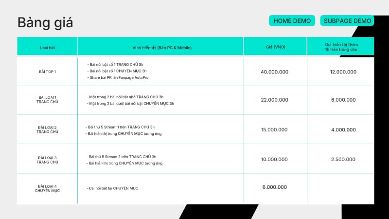 Bảng giá đăng bài PR trên Autopro năm 2026