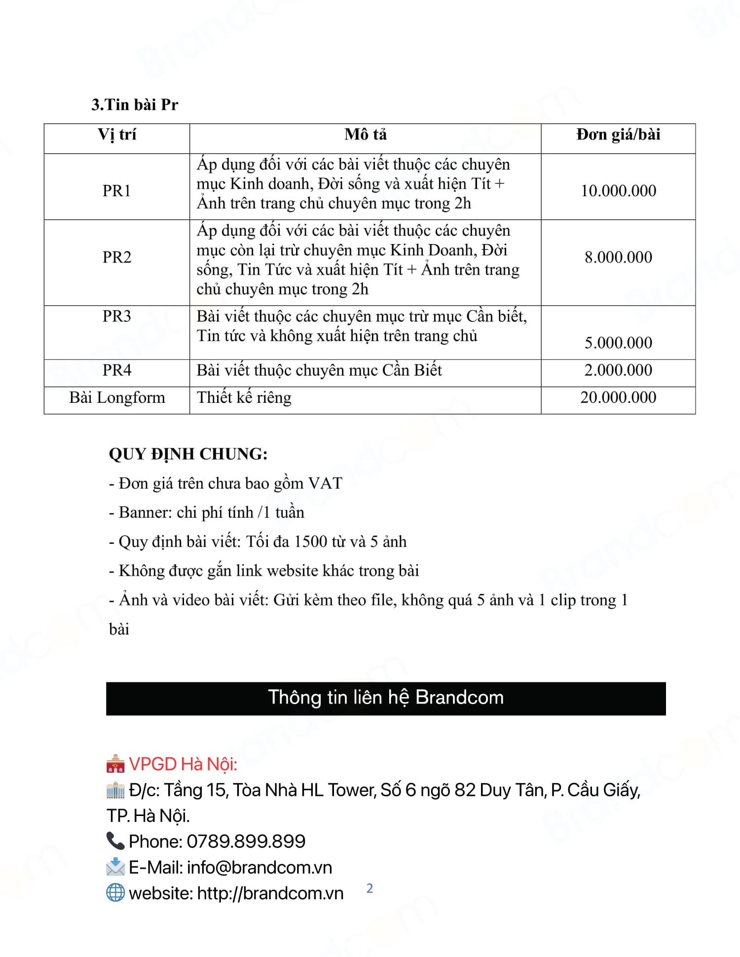 - Kinh nghiệm lâu năm: Brandcom có 17 năm kinh nghiệm trong lĩnh vực quảng cáo báo chí, cung cấp dịch vụ quảng cáo chuyên nghiệp.