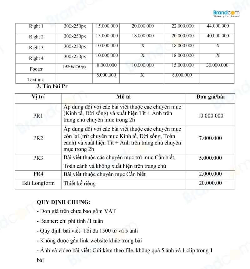 1. Báo giá quảng cáo Tạp chí Người đưa tin
