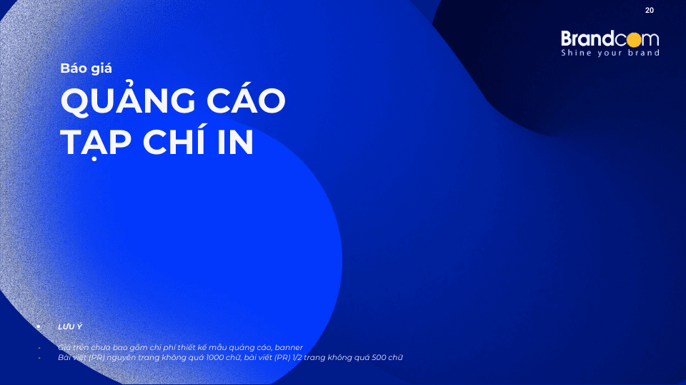 Brandcom chuyên booking quảng cáo báo chí, tư vấn booking quảng cáo trên báo giấy, báo mạng. Hỗ trợ đăng bài PR trên các báo điện tử, báo giấy, tạp chí uy tín,