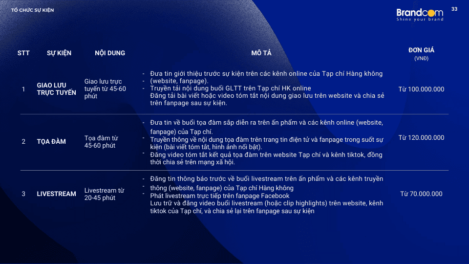 • Kinh nghiệm lâu năm: Brandcom có 17 năm kinh nghiệm trong lĩnh vực quảng cáo báo chí, cung cấp dịch vụ quảng cáo chuyên nghiệp