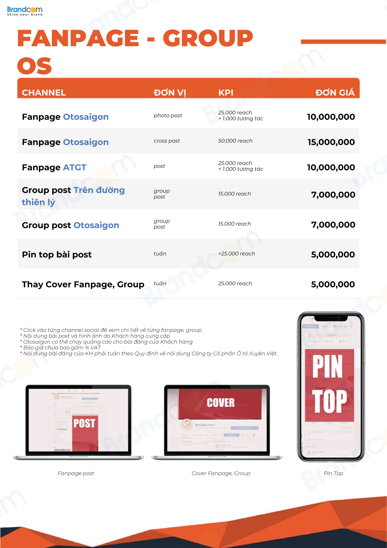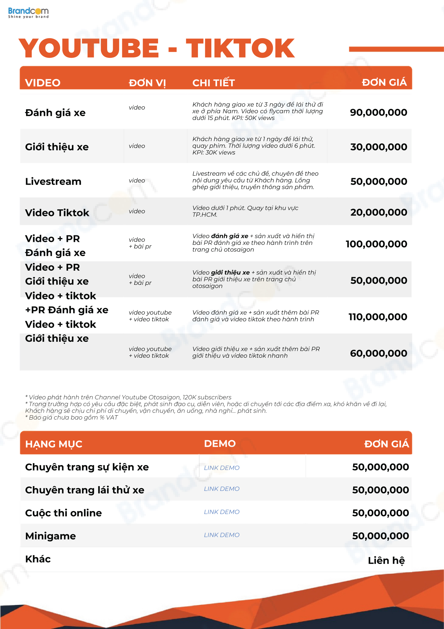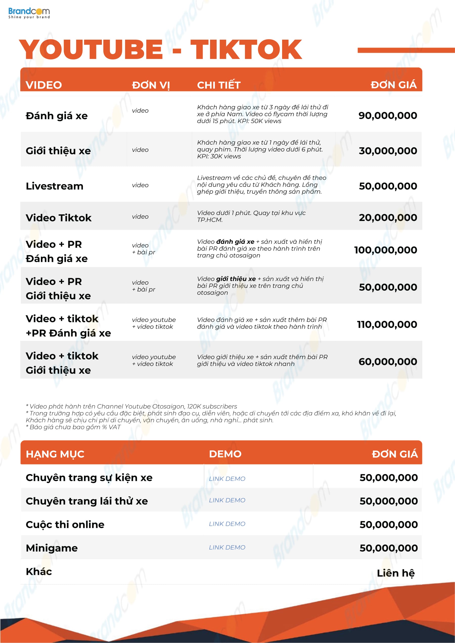 2.3. Bảng giá quảng cáo trên các kênh truyền thông của Otosaigon