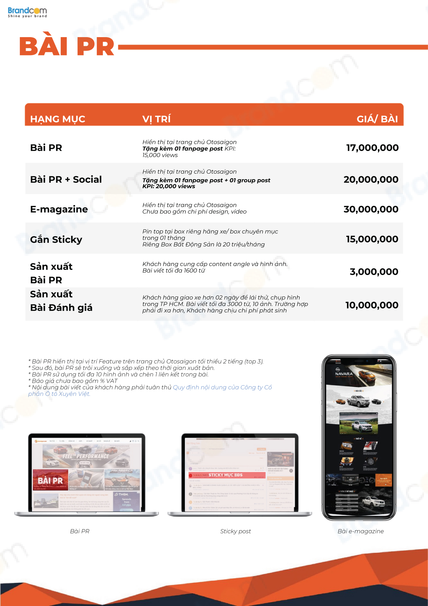 2.2. Bảng giá quảng cáo bài PR trên Otosaigon.com