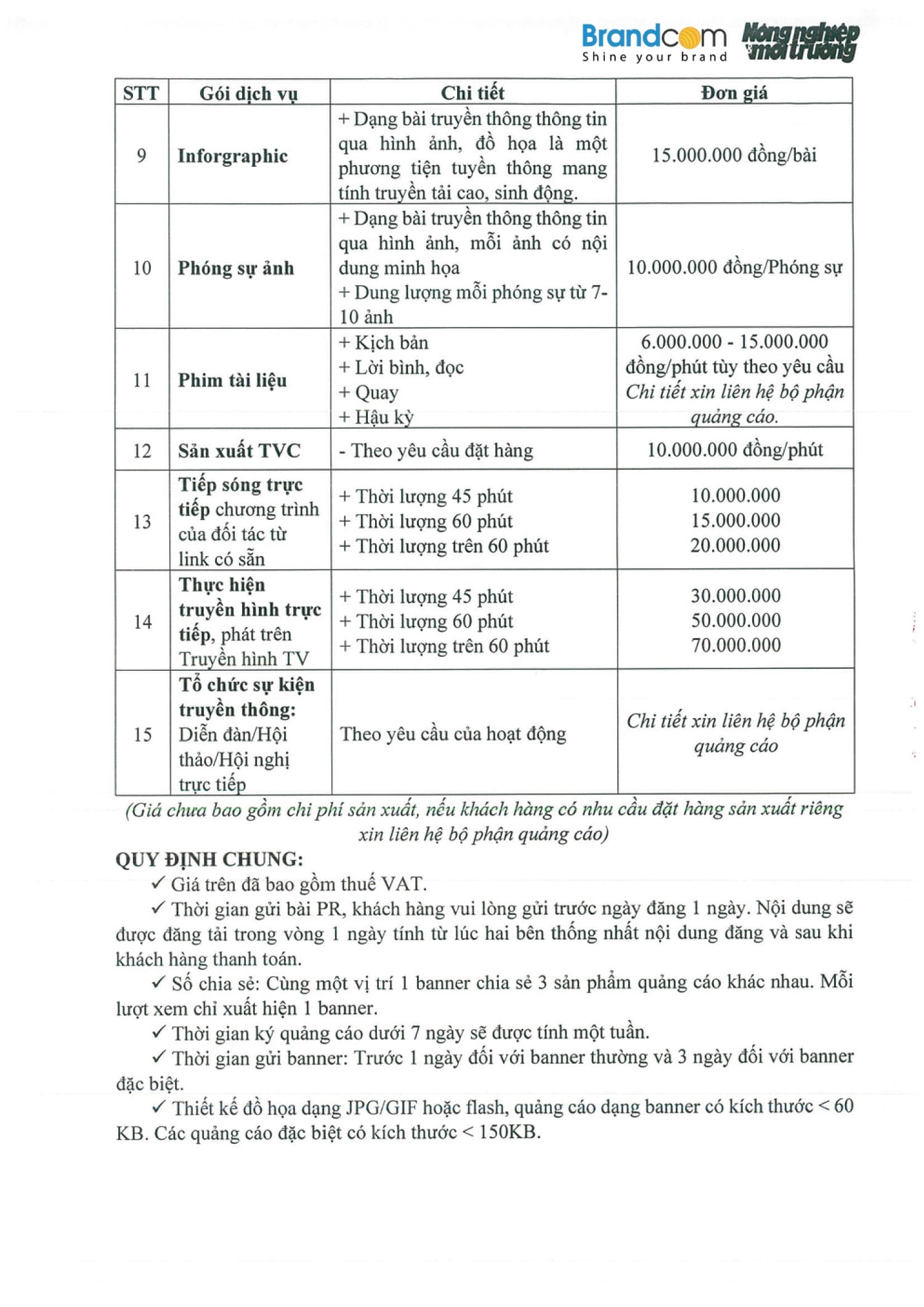 1. Báo giá quảng cáo trên báo Nông nghiệp và Môi trường 2026