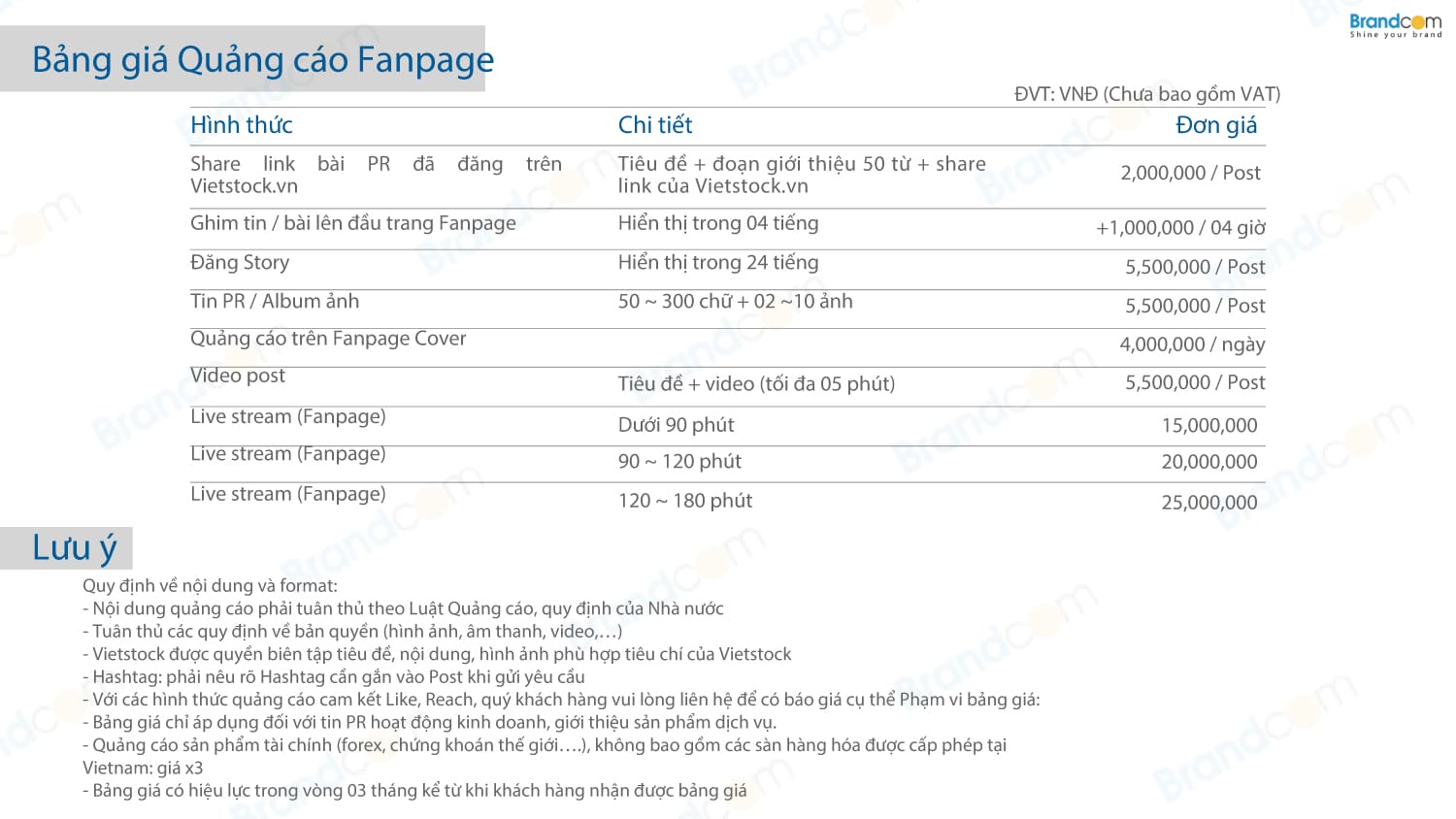 1. Báo giá quảng cáo trên fanpage Vietstock 2026
