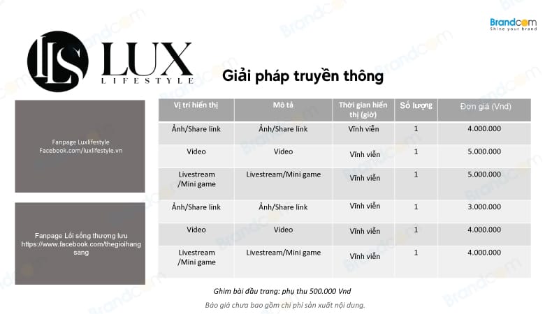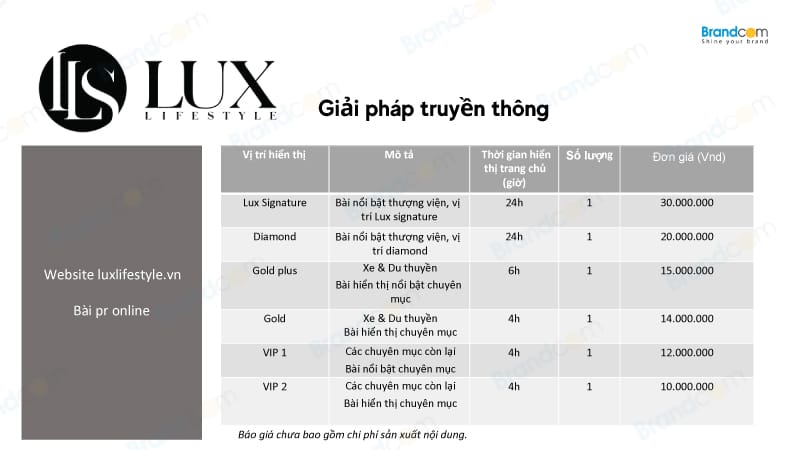 2. Báo giá quảng cáo trên Lux Lifestyle