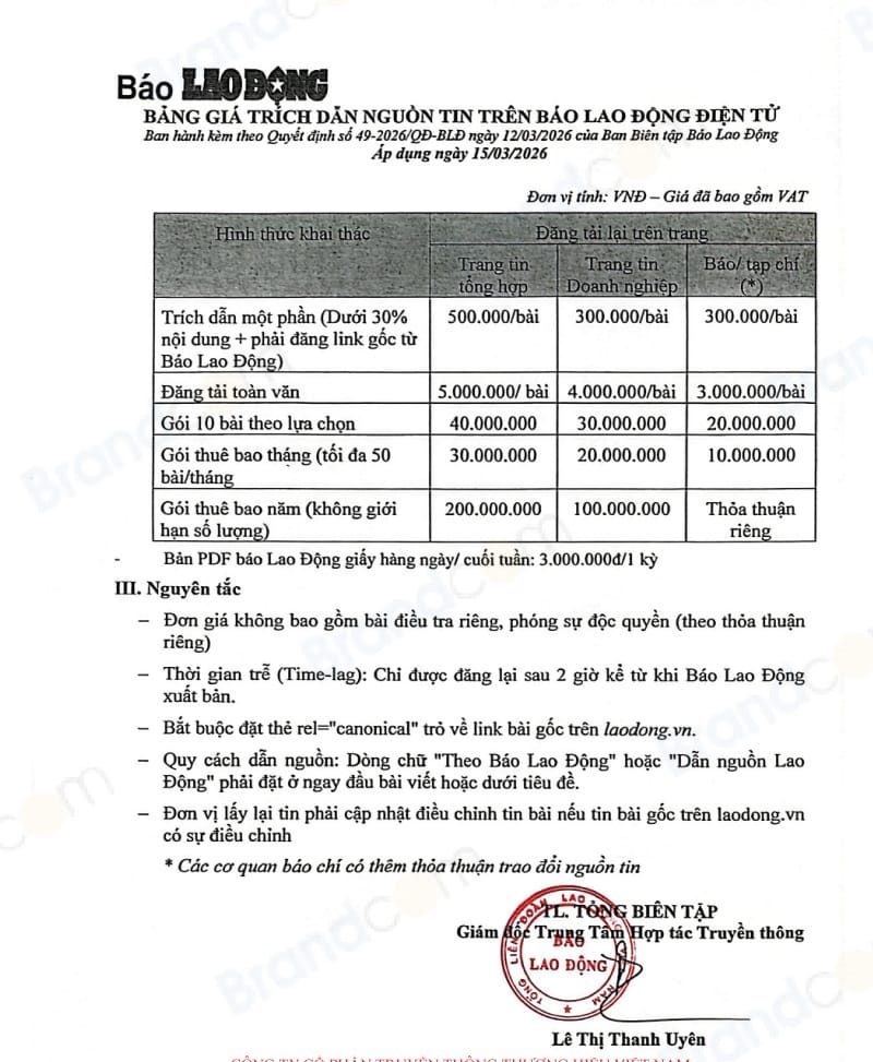Quý khách có nhu cầu quảng cáo dịch vụ trích dẫn nguồn tin trên báo Lao Động, xin liên hệ ngay với chúng tôi để được tư vấn và nhận được ưu đãi tốt nhất năm 2026.