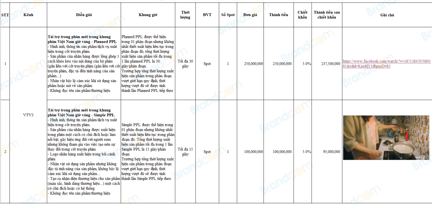 - Đơn giá và chính sách phải được duyệt trước khi phát sóng