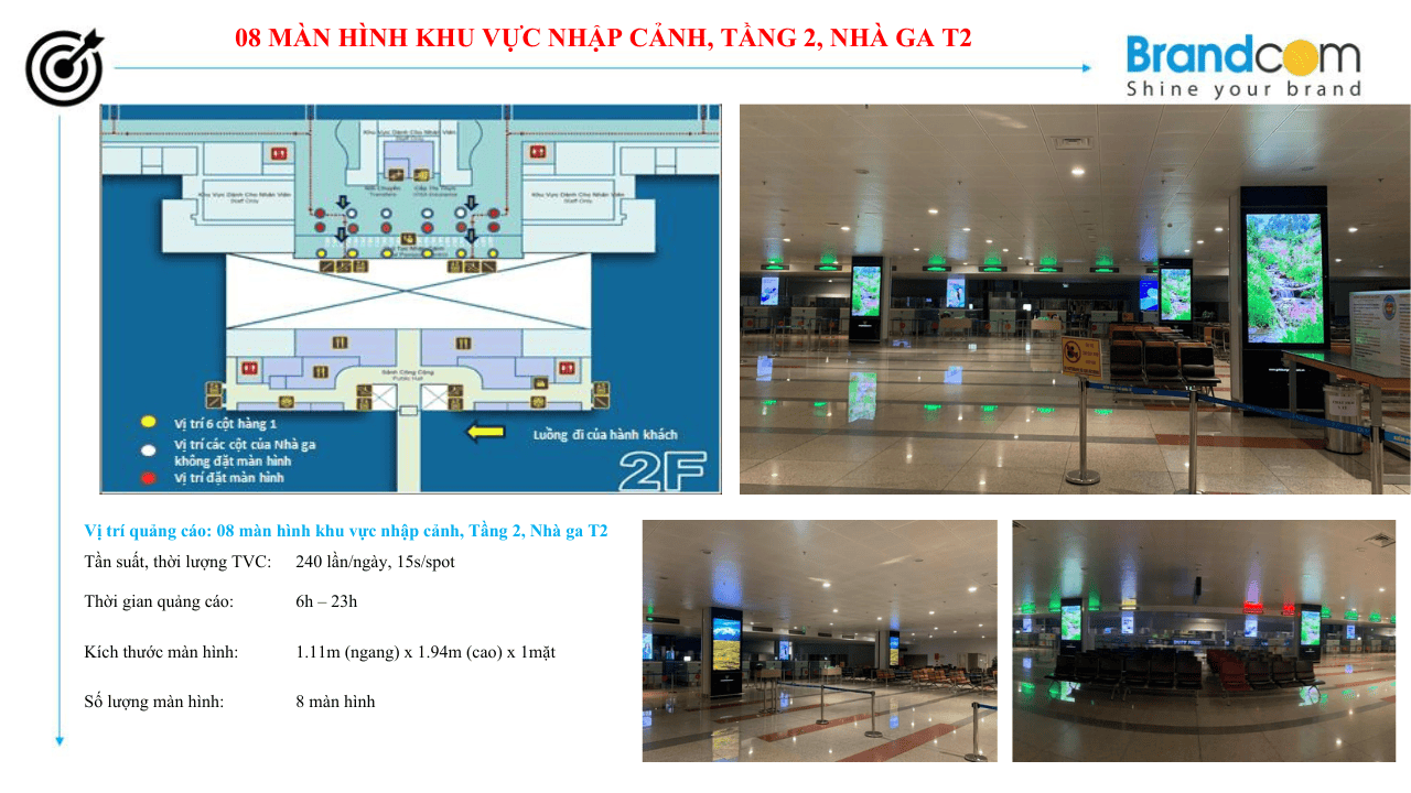 2.2. 08 màn hình khu vực nhập cảnh tầng 2, nhà ga T2