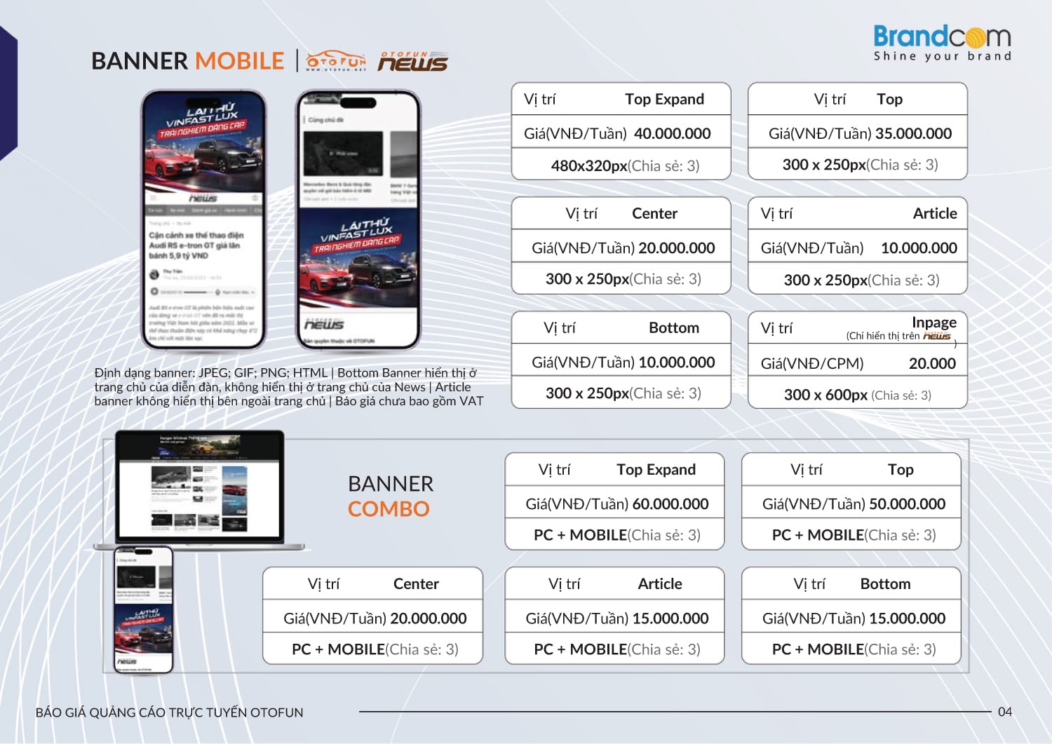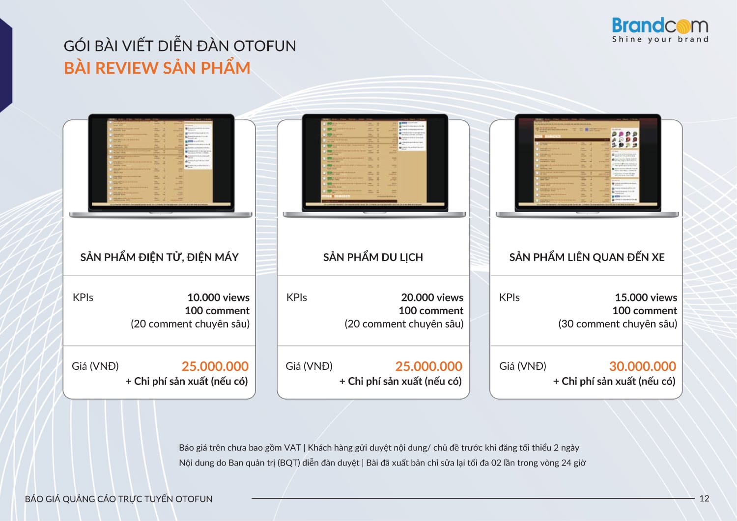 3. Bảng giá quảng cáo trên Otofun năm 2026