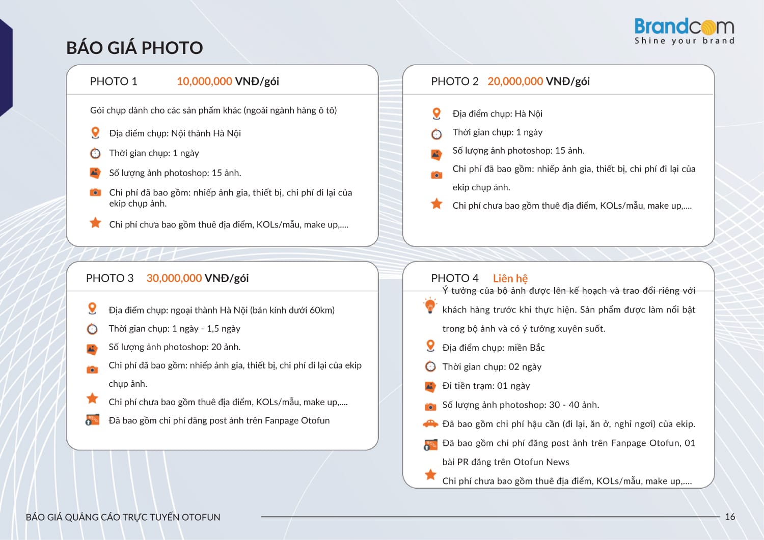 - Sản xuất photo và video quảng cáo trên Otofun